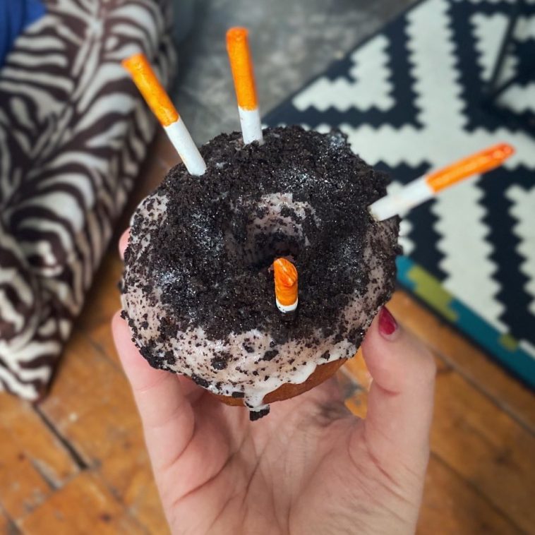 The Kat Slater is a fluorescent affair – a vanilla ring doughnut with a hand painted leopard print design that’ll have you shouting “ALFIE” at the top your lungs.